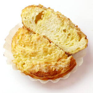 何層にも生地を折り重ねて焼き上げたリッチな食感のデニッシュ食パンです。
