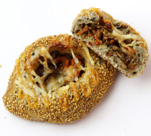 黒ごま・黒米・黒豆など7種類の雑穀をブレンドした生地にきんぴらごぼうとチーズを入れて焼き上げました。